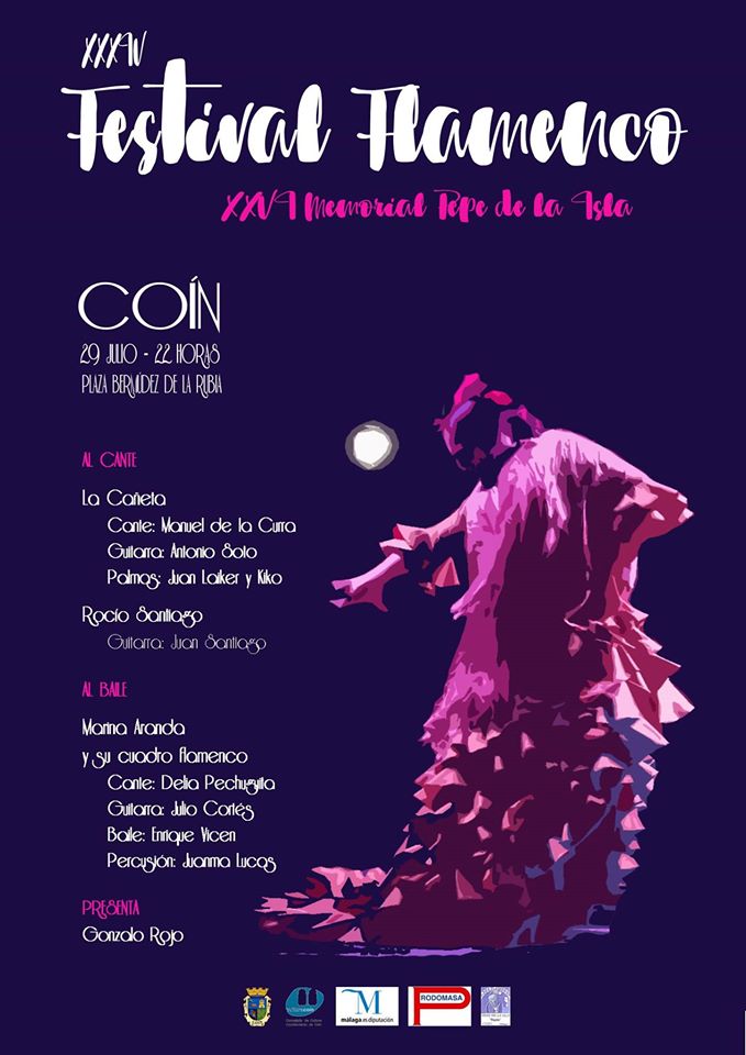 Uno de los festivales flamencos más antiguos de los que se celebran en Andalucía, el Festival Flamenco de Coín, se coloca en el calendario provincial como una de las citas más relevantes para los amantes de este arte. El día 29 de julio, a partir de las 22.00 horas, tendrá lugar este evento  que cumple 34 ediciones y 27 como Memorial Pepe de la Isla, en la plaza Bermúdez de la Rubia con entrada gratuita hasta completar aforo.