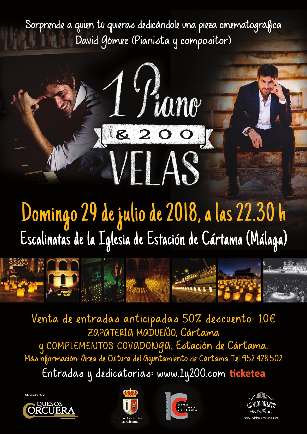 Las escalinatas de la iglesia de la Estación de Cártama acogen el domingo 29 de julio a las 22.30 el concierto de 1 Piano y 200 Velas